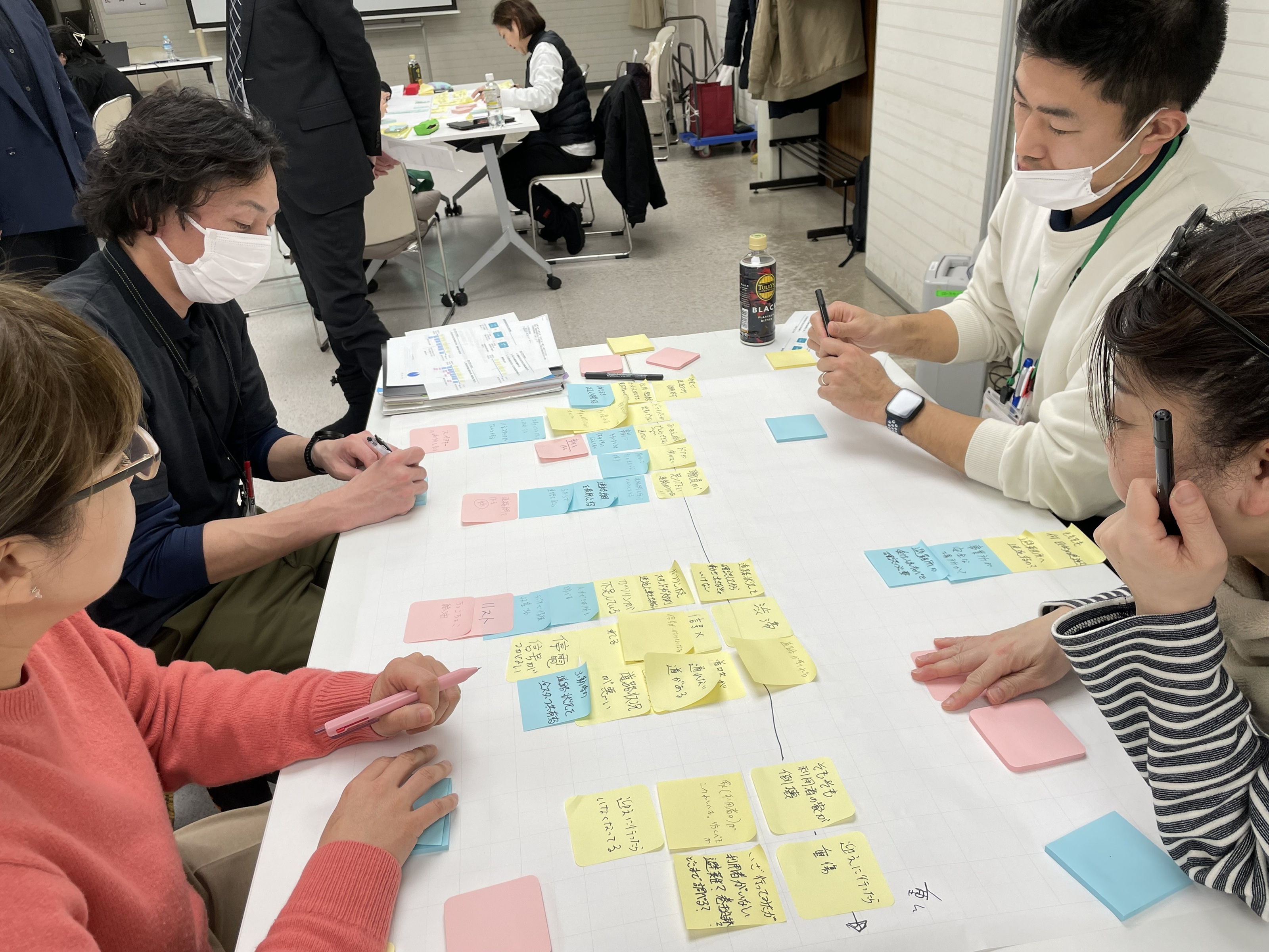 グループワークでは、災害時の対応を4つの場面にグループごとで考えました。